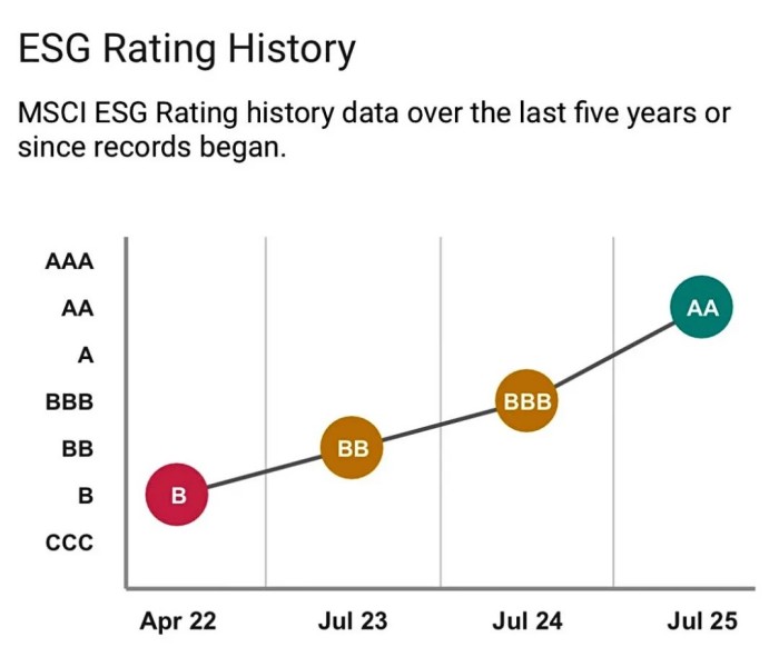 7月28日,國際權(quán)威投資者指數(shù)編制公司摩根士丹利(MSCI)發(fā)布最新ESG評級結(jié)果,中偉股份從BBB級躍升至AA級,標(biāo)志著公司可持續(xù)發(fā)展水平跨越式提升。